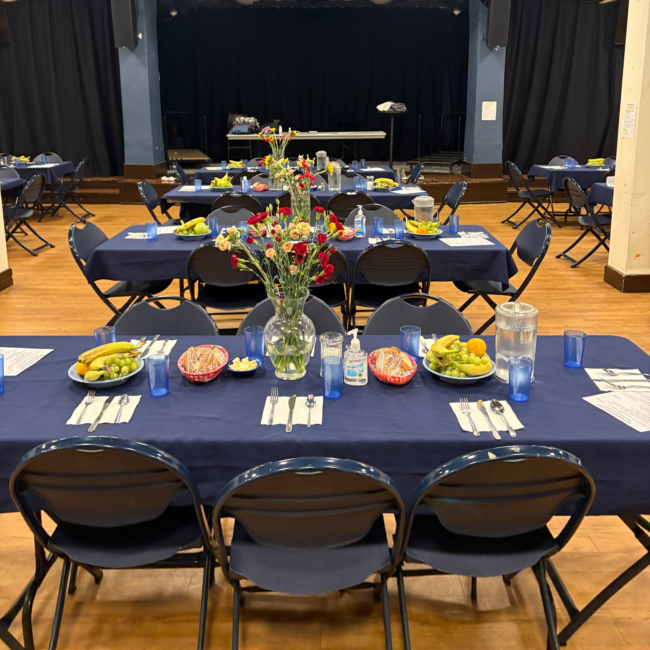 Our doors open up at 5:00pm. Guests are welcomed in to the hall and choose their own seating. For the first hour our guests can help themselves to soup, juice and coffee. Sometimes we also offer self-serve snacks during this time. Snacks vary depending on availability but are often something such as granola bars, fresh fruit or chips and salsa.